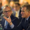 Andy Abboud, left, senior vice president of Government Relations and Community Development for the Venetian and the Las Vegas Sands, listens as Rob Goldstein, president/COO of Las Vegas Sands, addresses the Southern Nevada Tourism Infrastructure Committee at UNLV Thursday, Aug. 25, 2016.