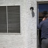 North Las Vegas code enforcement officer Matthew Meanea looks into a vacant home that had been occupied by squatters in North Las Vegas Wednesday, May 18, 2016.