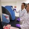 Christopher So, center, assistant professor of pharmaceutical sciences, looks at protein levels in cancer cells with research student Todd Nagamine at the Roseman University of Health Sciences' research lab in Henderson Tuesday, May 3, 2016.