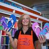 Shaunna Fisk, regional manager for Flip Flop Workshop, poses at the Fashion Show mall kiosk location Monday, May 23, 2016. The company allows you to decorate your flip-flops, then watch a "flip-flop genius" put it together in front of you.