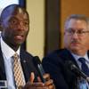 Terry Johnson, left, a member of the Nevada Gaming Control Board, speaks during a Responsible Gaming Panel at UNLV Thursday, Aug. 3, 2017. Alan Feldman, executive vice president of global government & industry affairs at MGM Resorts International, listens at right.
