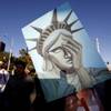 Esperansa Solorio holds a Statue of Liberty-themed sign as she marches on Flamingo Road Monday May 1, 2017. Thousands of union members and activists marched down the Las Vegas Strip before ending in a rally on Flamingo Road.