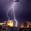 Lightning strikes behind Las Vegas Strip casinos as a thunderstorm passes through the northwest valley Wednesday, Sept. 13, 2017.