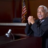 Nevada Supreme Court Justice Michael L. Douglas poses in his courtroom Tuesday, Feb. 21, 2017. .