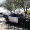 Mesquite Police Sgt. Tracy Fails talks with another officer at the entrance to the Prominence community, where mass shooter Stephen Craig Paddock owned a home, in Mesquite, Nev. Monday, Oct. 2, 2017.