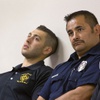 Henderson firefighter Anthony Robone, left, and Clark County firefighter Jesse Gomez listen during a news conference at the International Association of Firefighters Union Hall, Local 1285, Tuesday, Oct. 3, 2017. Robone and Gomez who were off-duty and attending the Route 91 Harvest festival seperately with family members on Sunday when gunman Stephen Paddock opened fire on the crowd.