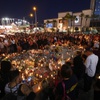 Hundreds of people attend a vigil, marking the one-week anniversary of the Oct. 1 mass shooting, at Sahara Avenue and The Strip Sunday, Oct. 8, 2017.