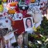 Photos of  Oct. 1 mass shooting victim Neysa Tonks is shown on a wooden cross in the median of Las Vegas Boulevard South near the "Welcome to Las Vegas" sign Monday, Oct. 9, 2017.
