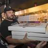 Owner Branden Powers hands out boxes of pizzas to volunteers at Evel Pie, 508 E. Fremont St., in downtown Las Vegas Sunday, Oct. 8, 2017. The pizza shop, in collaboration with the Helpful Hoodlums charity group, is donating pizza and drinks to first responders in the wake of the Oct. 1 Route 91 Harvest festival mass shooting.