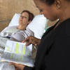 Sabrina Cofield (as nurse Susie Monhahan) looks over her lines during rehearsal for "W;t" at the Public Fit Theatre, 100 South Maryland Parkway, Wednesday Oct. 11, 2017. Tina Rice plays the part of patient Vivian Bearing.