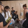 Actors attempt to resuscitate a patient in a scene from "W;t" at the Public Fit Theatre, 100 South Maryland Parkway, Wednesday Oct. 11, 2017.