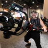 Thor Wixom of Dongguan LanParte Television Equipment Technology Company, displays a Letus Helix electronic stability system during the National Association of Broadcasters (NAB) show at the Las Vegas Convention Center Tuesday, April 10, 2018.