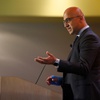 Yalmaz Siddiqui, vice president of corporate sustainability for MGM Resorts International, speaks during an announcement at the Three Square food bank Wednesday, Jan. 17, 2018. MGM Resorts announced a surplus banquet food donation program they hope will provide 800,0000 meals by 2020.