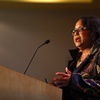 Phyllis A. James, executive vice president and chief corporate social responsibility officer for MGM Resorts International, speaks during a news conference at the Three Square food bank Wednesday, Jan. 17, 2018. MGM Resorts International announced a surplus banquet food donation program they hope will provide 800,0000 meals by 2020.