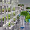 Workers harvest microgreens and herbs in a grow room during the grand opening of Oasis Biotech, an indoor vertical farming facility, Wednesday, July 18, 2018.
