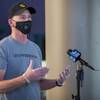 Kevin Burke, a partner in Matter Real Estate and CEO of Burke Construction, talks with a reporter as the companies deliver 450 meals for healthcare workers, part of one of its final deliveries made through the "UnCommon Heroes" project, at Spring Valley Hospital Medical Center Friday, April 24, 2020. Matter and Burke are preparing to start work on Uncommons, a mixed-use development near I-215 and Durango Road in the southwest valley.