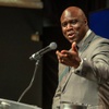 Tony Gladney, vice president of community engagement for MGM Resorts International, speaks during a news conference at Mandalay Bay Thursday, Jan. 23, 2020. MGM Resorts International announced a founding partnership with the Las Vegas Raiders. Gladney played for UNLV football and went on to play in the NFL with the San Francisco 49ers.