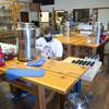 Will Wood, left, and Julian Morales bottle hand sanitizer at the Las Vegas Distillery in Henderson Wednesday, May 13, 2020. The distillery has switched from making distilled spirits to hand sanitizer in order to help in the fight against the novel coronavirus (COVID-19).