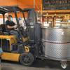 Julian Morales uses a fork lift to move a vat of hand sanitizer at the Las Vegas Distillery in Henderson Wednesday, May 13, 2020. The distillery has switched from making distilled spirits to hand sanitizer in order to help in the fight against the novel coronavirus (COVID-19).