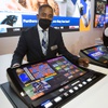 Darnell Johnson, senior director of protect management at IGT, stands behind an IGT Peak BarTop machine during the Global Gaming Expo (G2E) at the Sands Expo Center Tuesday, Oct. 5, 2021. The machine can play the traditional slot machine and video poker games but also incorporates sports betting and live sports viewing.